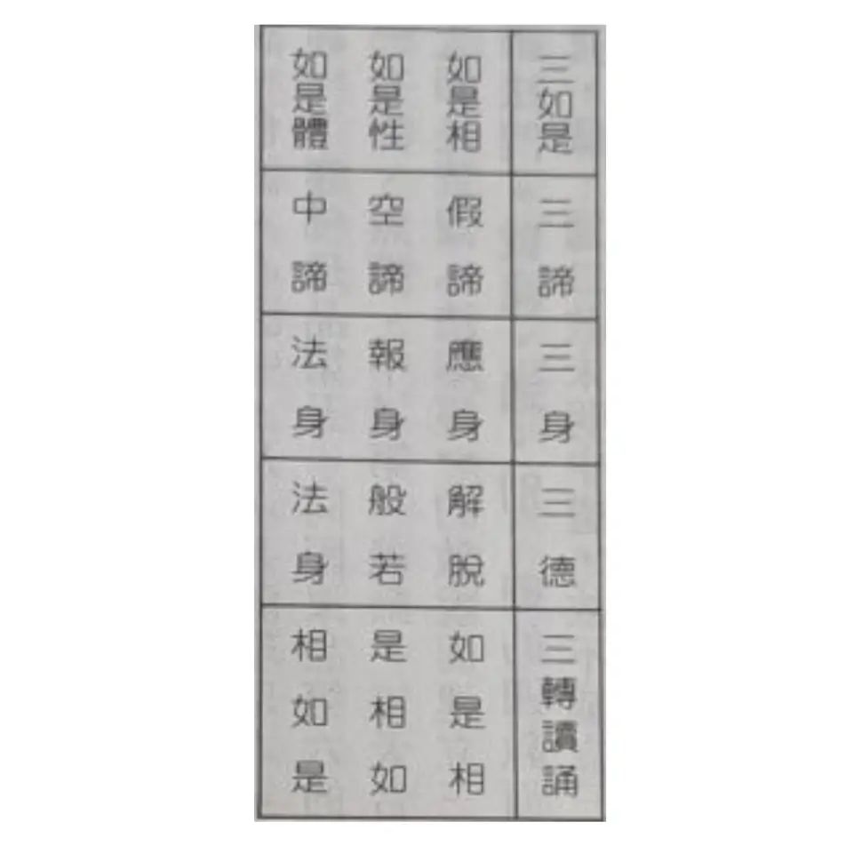 将佛悟得的究极真理從三個層面予以闡述者。諦是明徹的真實、真理之意。