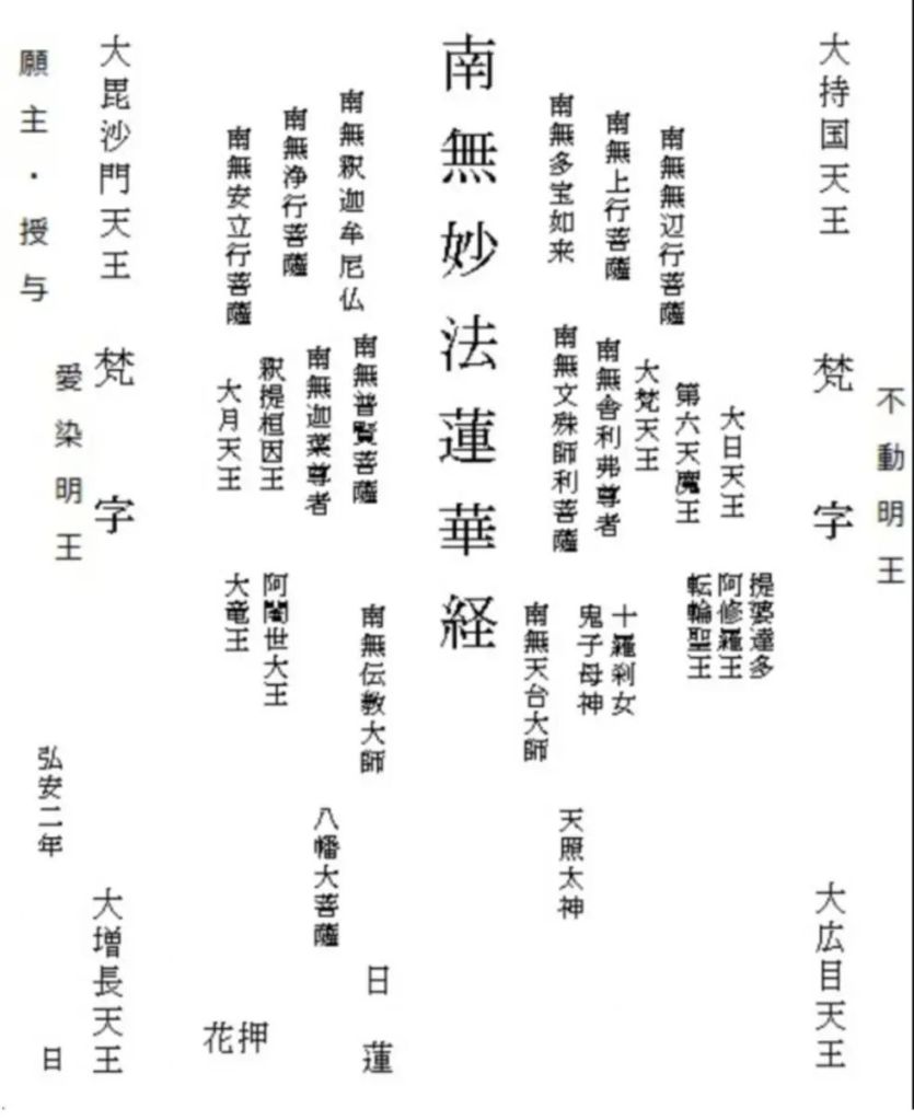释迦、多宝、十方诸佛、地涌、龍樹菩薩、天台、妙樂、傳教大師,皆是以爲即身成佛限於法華經者也。我弟子等須將 此事牢記在心也。