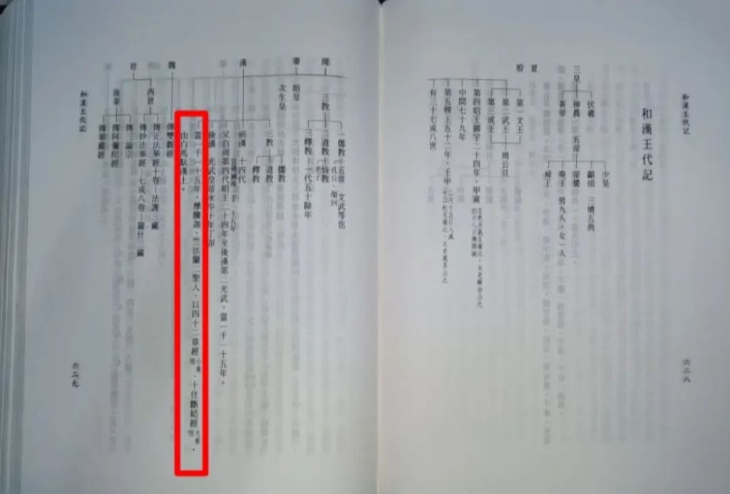 周第四代、昭王御宇,二十四年甲寅四月八日夜中,天現五色光氣,互及南北,明如白晝,大地六種震動,不雨而江河井池水滿,一切草木開花結果,不思議事也。昭王大驚,大史蘇由占云: 「西方聖人生」。昭王問:「此國如何」?答云:「無事,一千年後,彼之聖言,渡來此國,利益衆生」彼稍習外典,一毫未斯見思之感者,猶知一千年後之事。果然,「千一十五年後,後漢第 二代·明帝之永平十年丁卯,佛教渡來漢土。而此,不容比擬者,乃是在釋迦,多寶、十方分身諸 佛前,諸菩薩之未來記也。當世日本國,豈能竟無法華經之三類敵人乎?