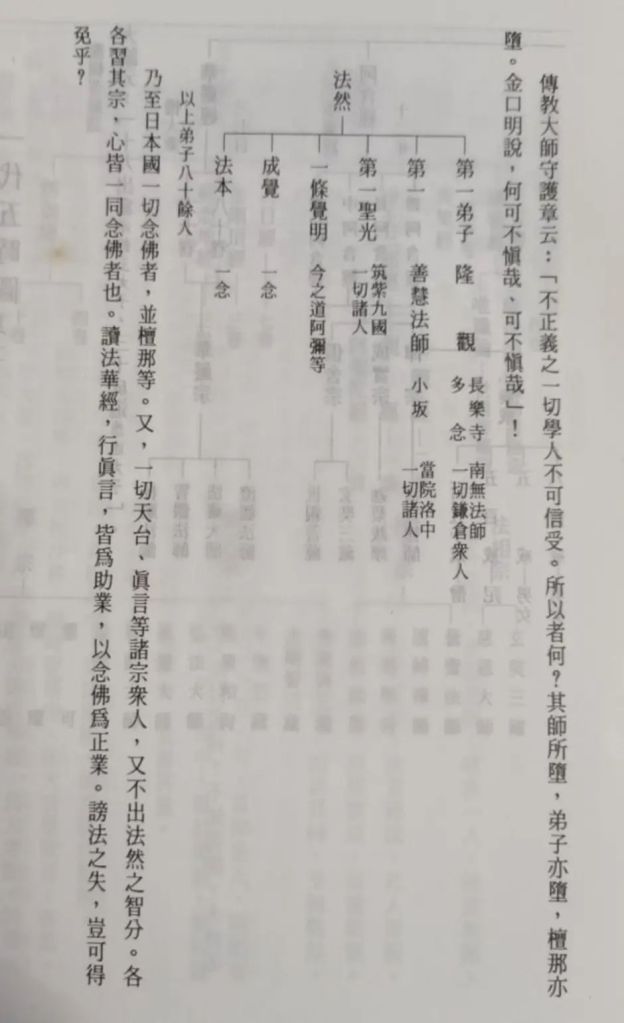 道掉、傳教、法然,慧心,其誰信乎?彼於一切經無證文,此正依法華經。且日本國已一同以叡山大師爲受戒之師,胡爲乎傾心於天魔附身之法然,而棄我剃頭之師也?法然果为智者,何不以此釋載於選擇而加以和會,彼是故意隱人之理者也。