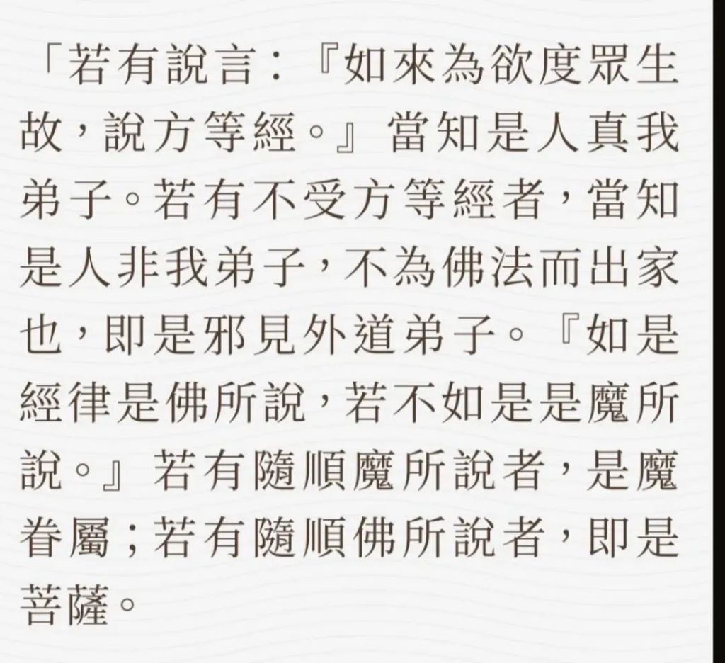 以佛说经文方为佛金言,不可唯以人师之释为準,需依佛在涅槃经的「四法依」遗言为根本。